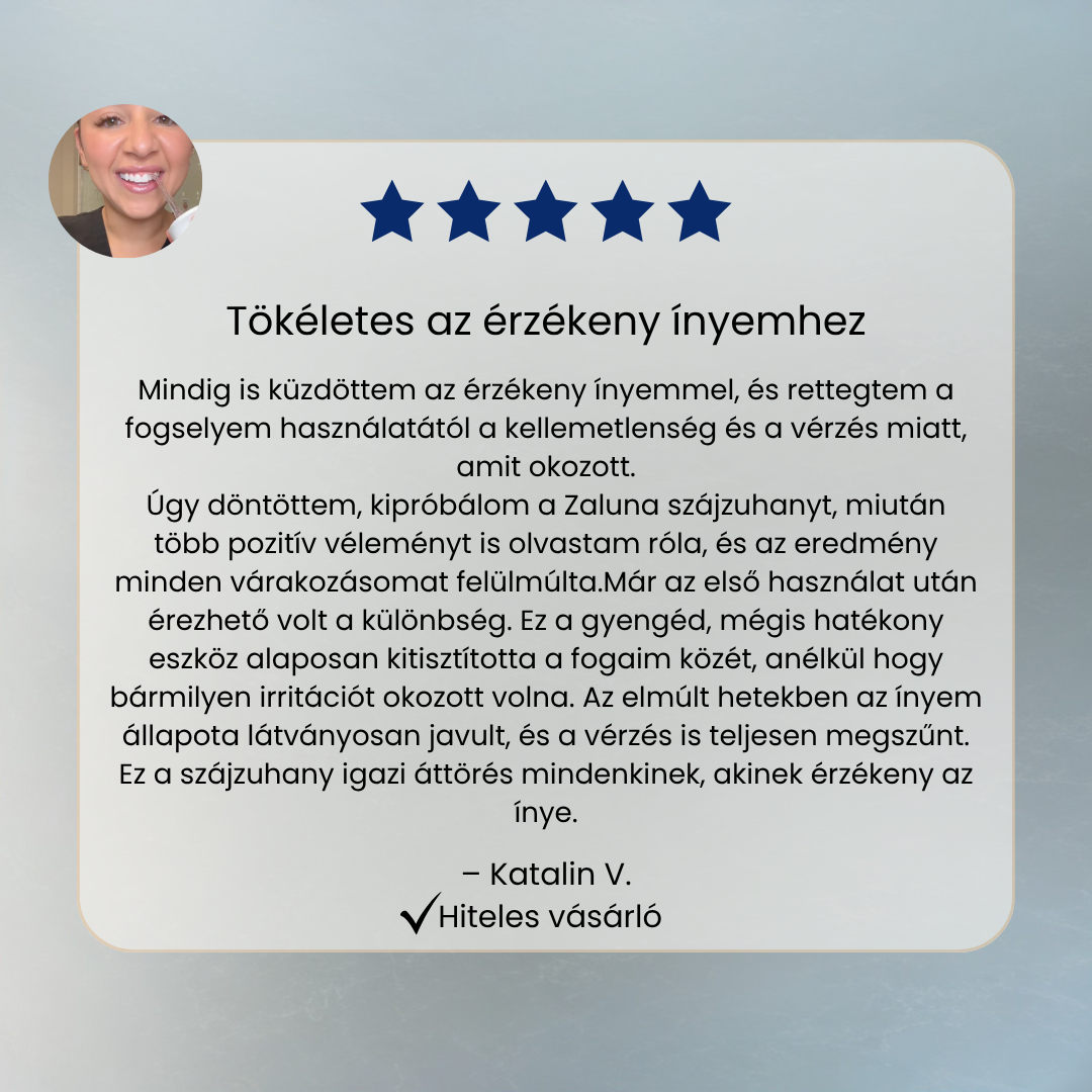 Már több száz elégedett vásárló tapasztalta meg, milyen érzés a valóban tiszta és friss szájhigiénia. Egészségesebb íny, tisztább fogak és üdébb lehelet minden egyes használat után. Tedd meg Te is kockázat nélkül, próbáld ki, és ha 14 napon belül nem imádod, visszafizetjük a teljes árát.